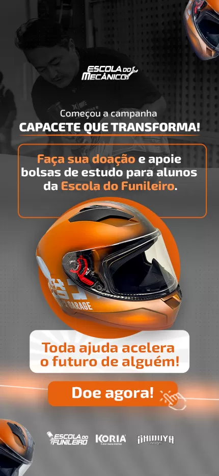A campanha Capacete que Transforma é uma iniciativa beneficente do Instituto Escola do Mecânico, em parceria com Shibuya e KORIA.