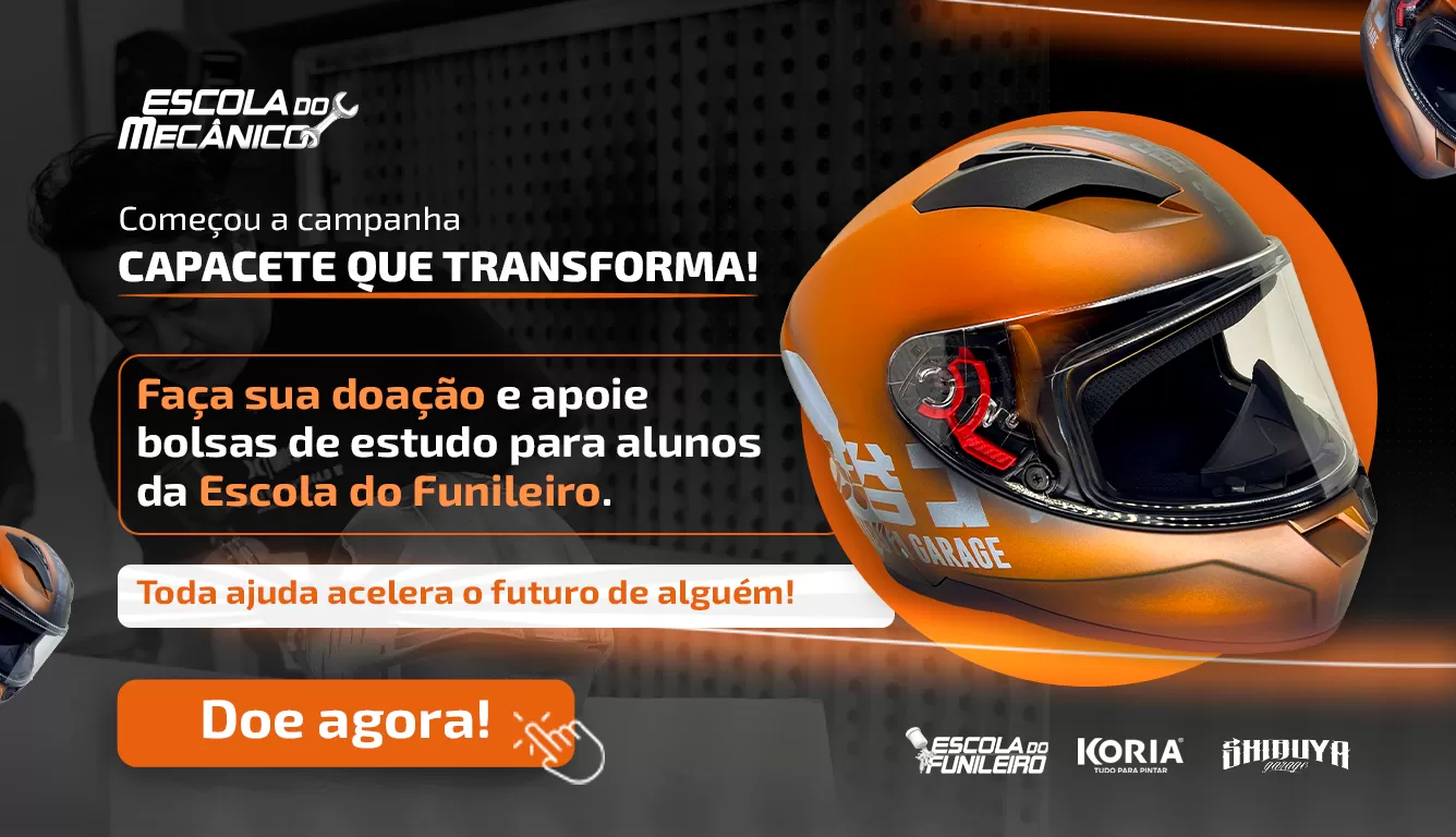 Por isso, unimos forças com a Shibuya Garage e a KORIA para criar uma ação especial: juntos, estamos arrecadando recursos para oferecer bolsas de estudo na Escola do Funileiro, abrindo caminhos para novos profissionais que sonham em viver da mecânica e da pintura automotiva.