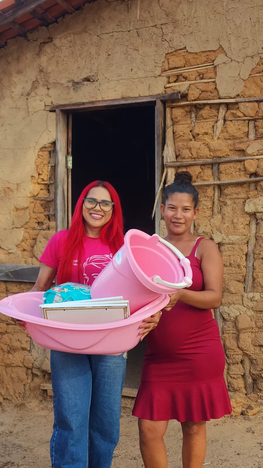Doação de enxovais para gestantes e recém-nascidos, oferecendo apoio material e emocional no início da maternidade.